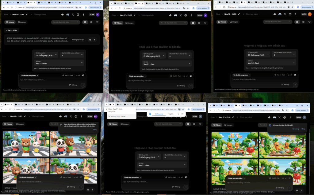6. Nếu bật Run Veo3 → AutoVeos tự chạy tiếp video