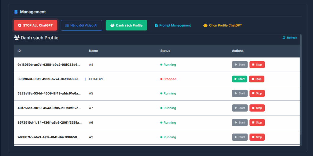 • Tắt toàn bộ profile bằng “STOP ALL ChatGPT”