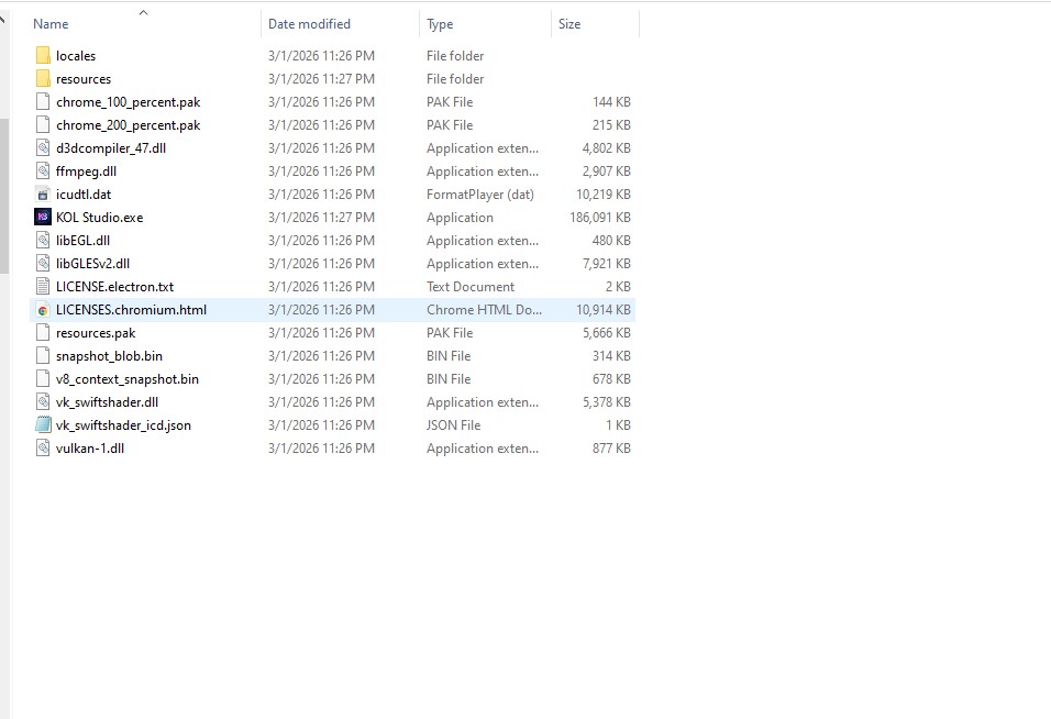 2. Mở thư mục đã giải nén, chạy file “KOL Studio.exe”