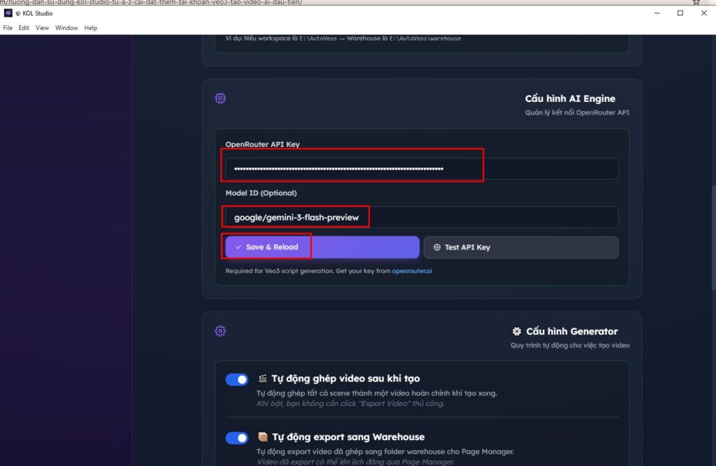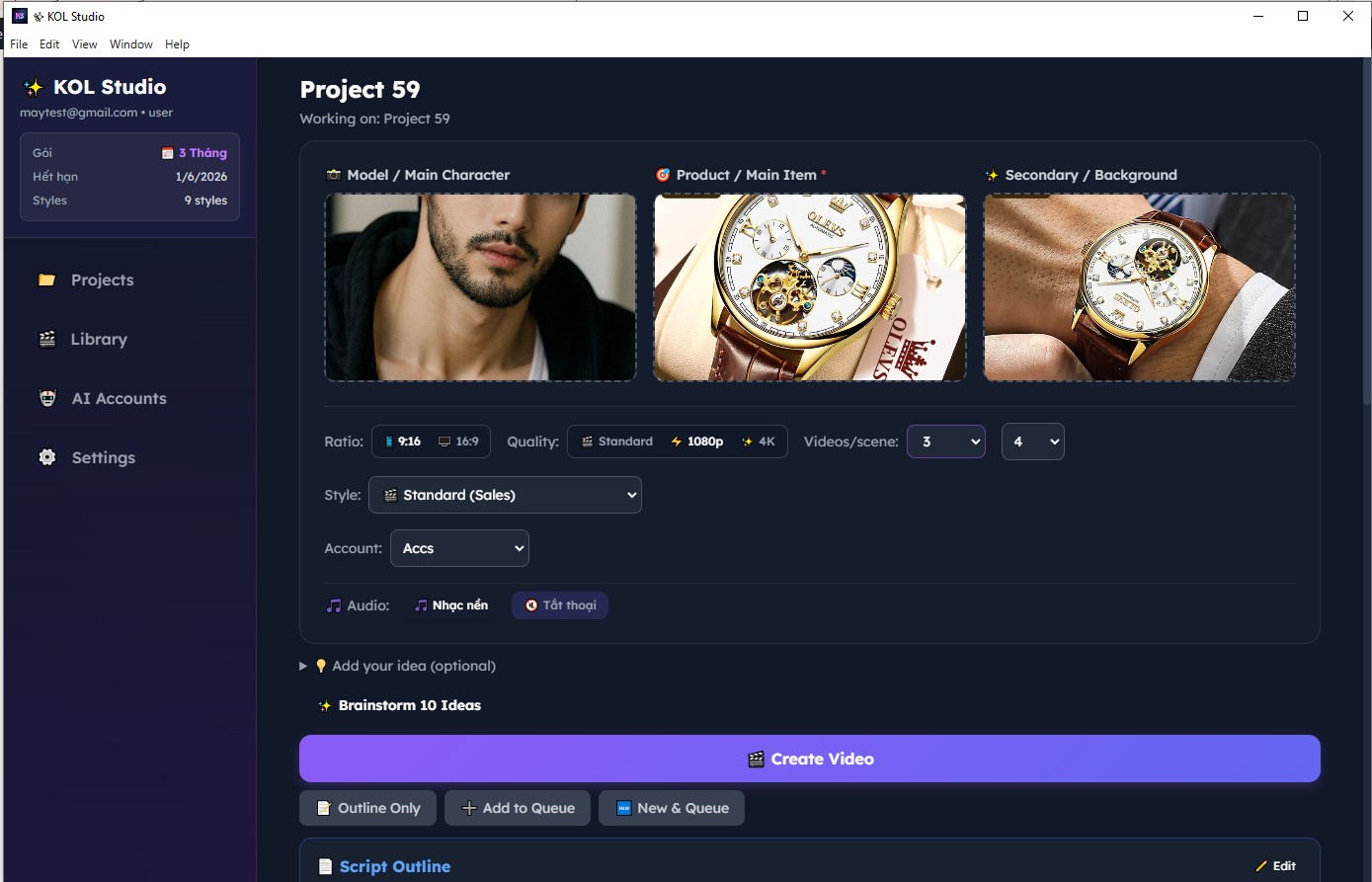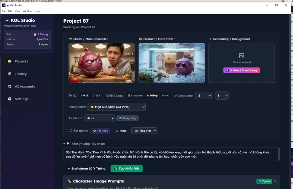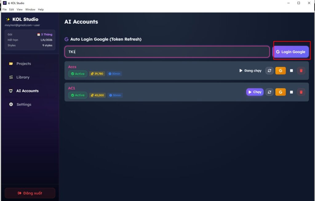 Bài viết này hướng dẫn bạn cài đặt, cấu hình và tạo video AI đầu tiên với KOL Studio — từ đăng nhập, thêm tài khoản Google AI (Veo3), nhập API key, đến xuất video hoàn chỉnh.